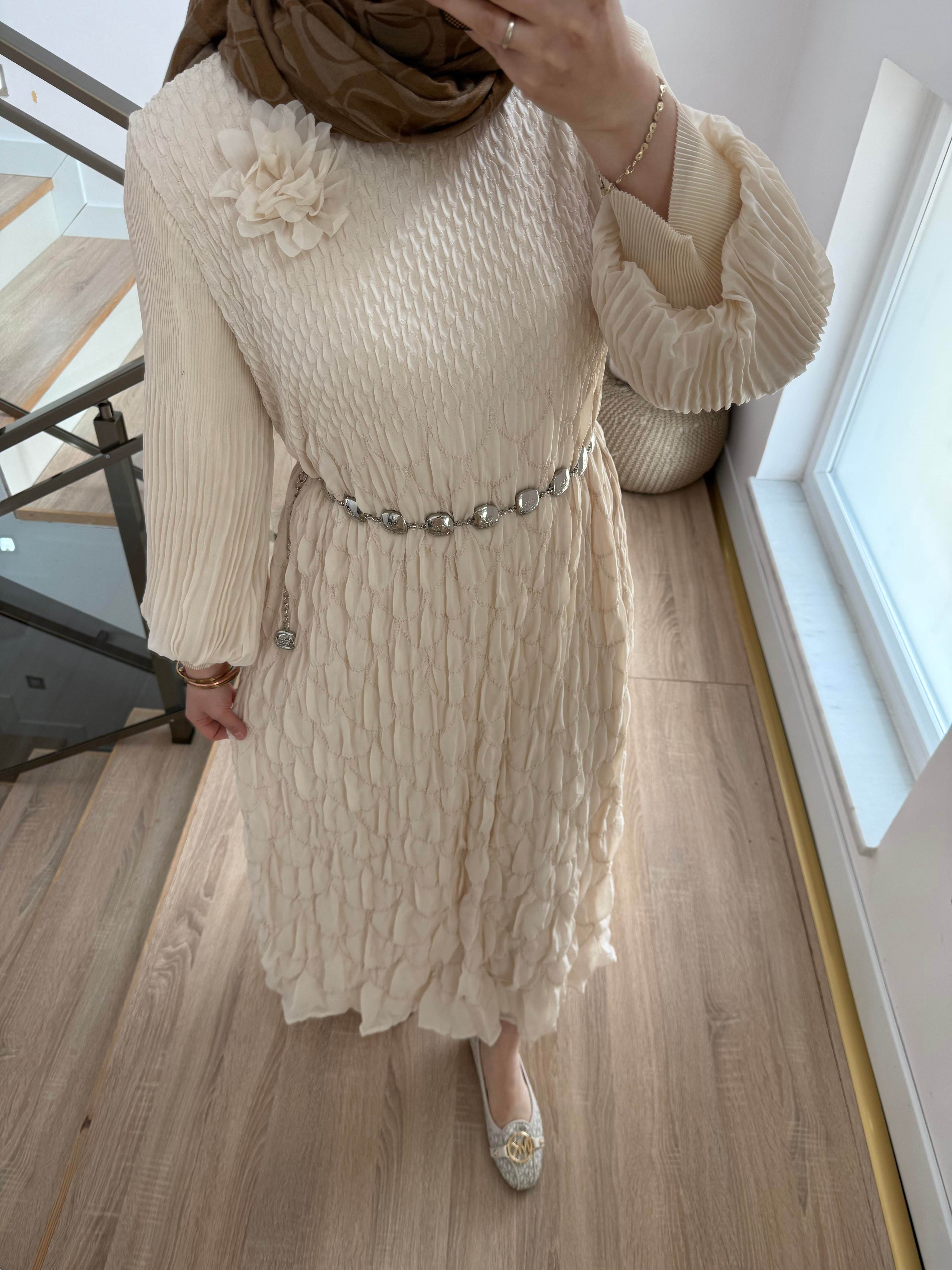 Bürüncük Krem Elbise