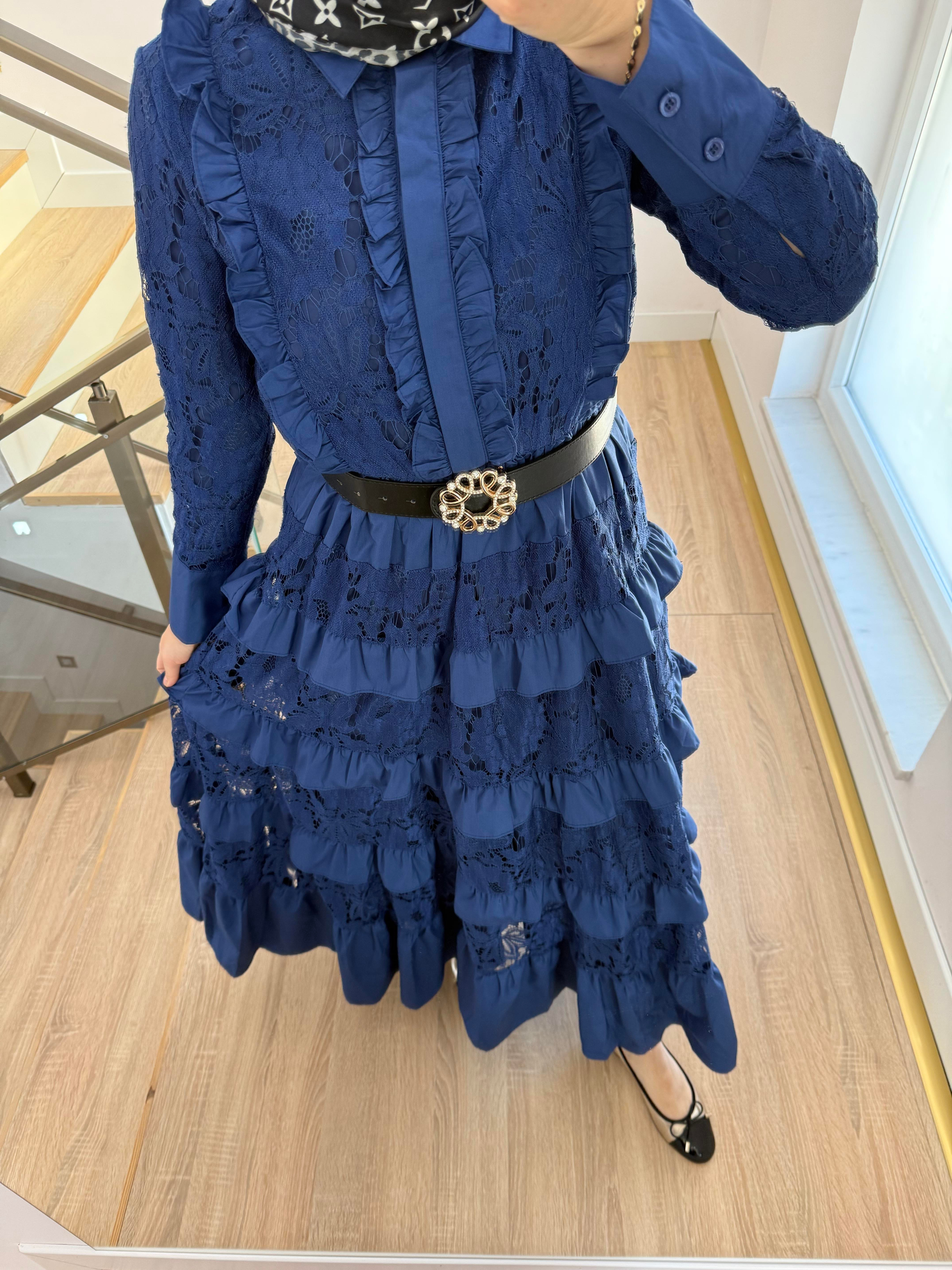 Güpürlü Saks Mavisi Elbise