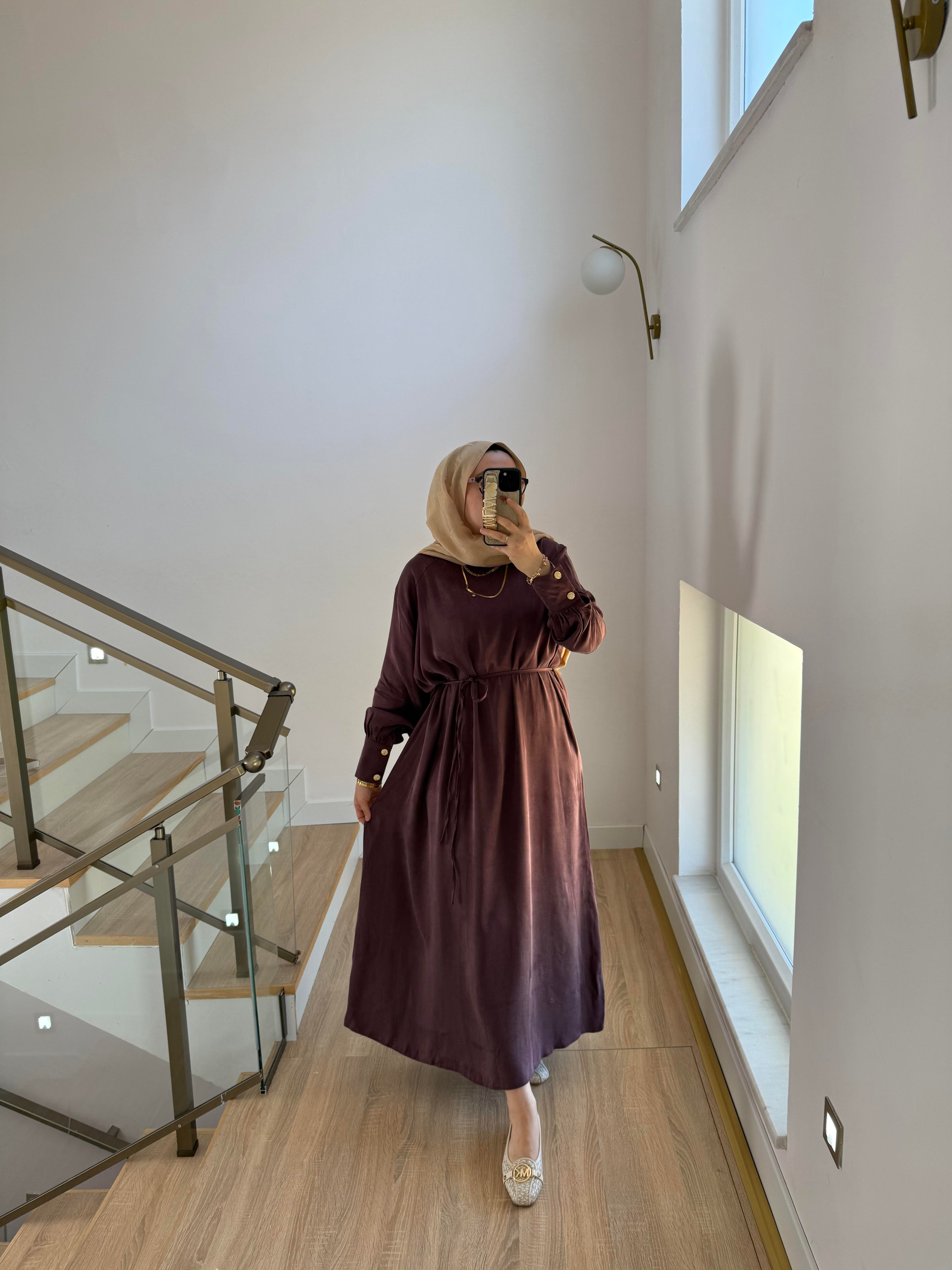 İpek Cupra Elbise Mürdüm (MLW1834)